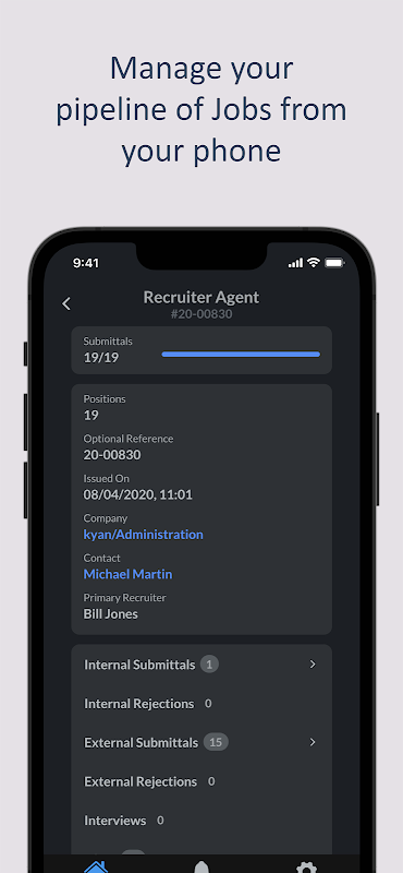 Jobseiten sind jetzt auch in der App verfügbar und bieten eine vollständige Aufzeichnung von Einreichungen, Vorstellungsgesprächen und Starts. Berechtigte Benutzer können Ressourcen neu zuweisen oder Jobs spontan aktualisieren.