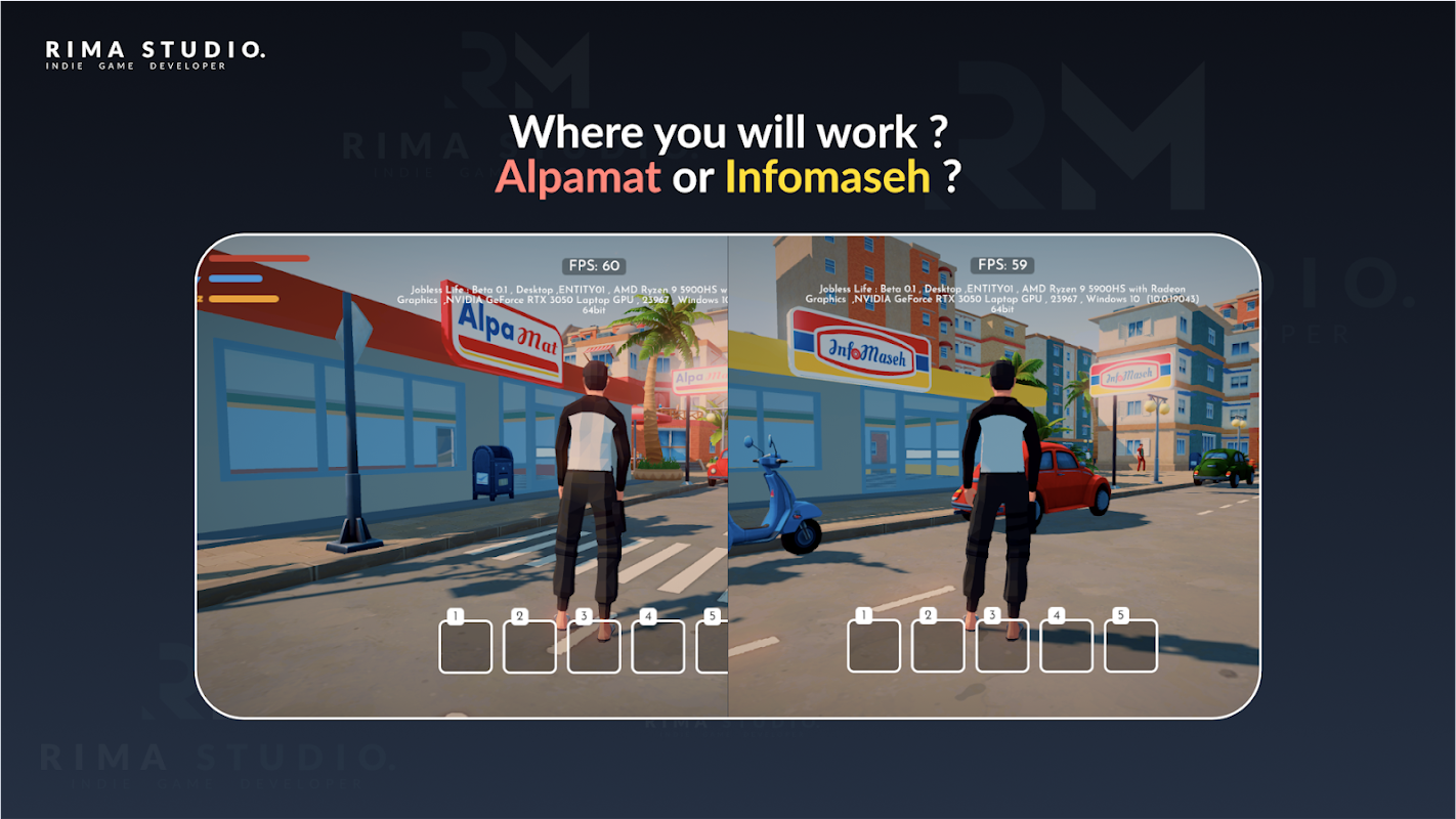 „Jobless Life“ ist ein Simulationsspiel, das von einem Arbeitslosen erzählt, der in einer Stadt Arbeit finden muss, um zu überleben. In diesem Spiel müssen die Spieler verschiedene Jobs finden, während sie Geld und den täglichen Bedarf des Lebens verwalten.