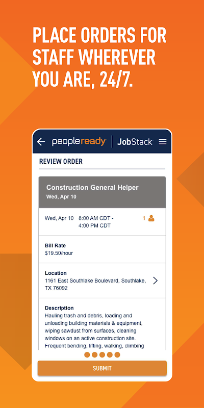 Beginnen Sie noch heute mit der Einstellung! Laden Sie die Personalbeschaffungs-App von PeopleReady herunter, JobStack, um Ihre On-Demand-Mitarbeiter zu verwalten und Bestellungen aufzugeben, um noch heute die Vorteile (und die Sicherheit!)
