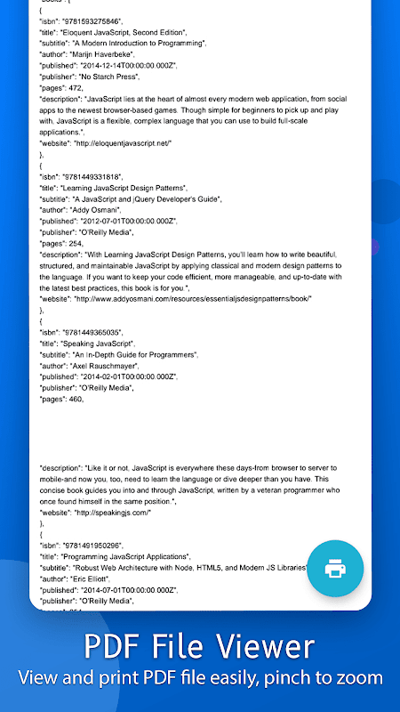Der Json-PDF-Konverter bietet Ihnen eine schnelle und einfache Möglichkeit, den Json so zu formatieren, dass Sie ihn lesen können. Über den Json-Dateiöffner können Sie auch alle konvertierten PDF-Dateien einfach anzeigen. Kann jede PDF-Datei in einem PDF-Viewer öffnen. Über Json Reader können nicht nur konvertierte PDF-Dateien angezeigt werden, sondern auch beliebige PDF-Dateien aus dem Gerätespeicher ausgewählt und in einem PDF-Viewer angezeigt werden.