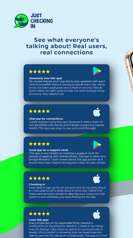 Bitte denken Sie daran: Einfach einchecken. Laden Sie Just Checking In jetzt herunter und fühlen Sie sich unterstützt. Weitere Informationen finden Sie in unseren Allgemeinen Geschäftsbedingungen und Datenschutzbestimmungen. Lassen Sie uns der psychischen Gesundheit Priorität einräumen und in Verbindung bleiben. #JustCheckingIn