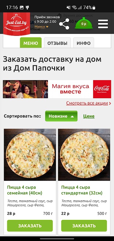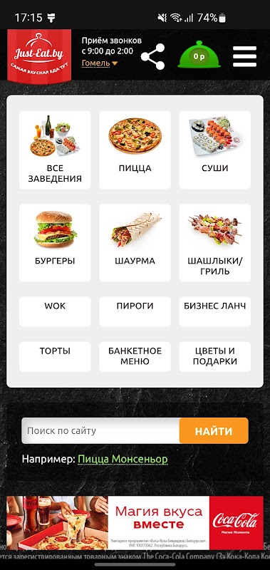 Pizza, Sushi, Döner und andere Lebensmittel in den Städten von Belarus in einer Anwendung!