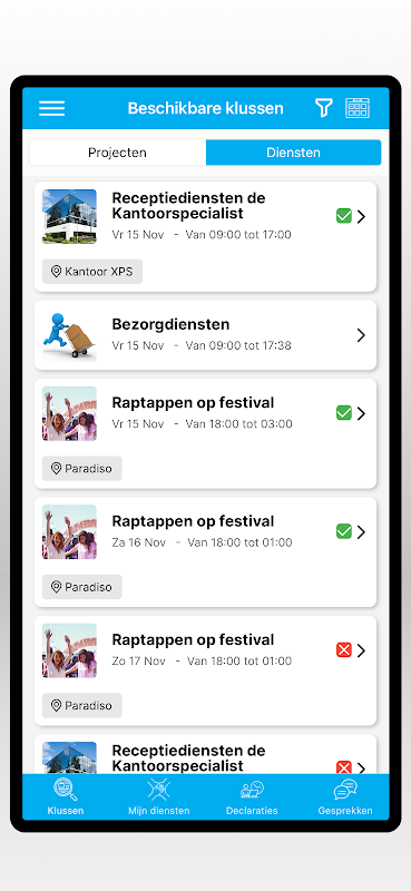 Finden Sie neue Jobs und melden Sie sich ganz einfach an. Sehen Sie sich die Dienstleistungen an, für die Sie eingeplant sind, und geben Sie dann Ihre geleisteten Arbeitsstunden sowie Reise- und/oder Spesen an.