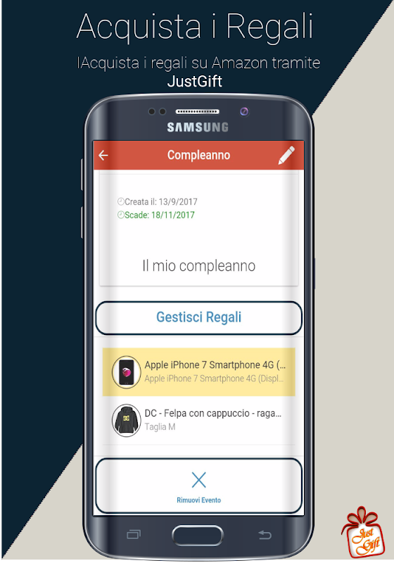L'applicazione di Just Gift permette agli utenti di poter far conoscere, per ogni ricorrenza,