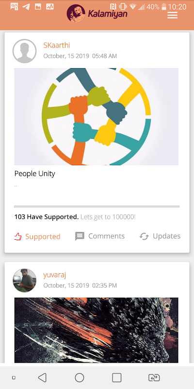 Als Kalamiyan können Sie beginnen, Veränderungen in der Gesellschaft zu mobilisieren, indem Sie über ein Problem in Ihrer Umgebung berichten. Menschen aus der ganzen Welt können Ihre Sache sehen und ihre Unterstützung über unser Portal zeigen. Sobald die Zielreichweite Ihres Problems erreicht ist und von vielen unterstützt wird, werden wir uns bemühen, Ihr Problem zu lösen und eine positive Auswirkung auf die umliegende Community zu erzielen.