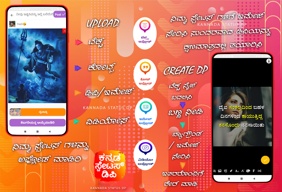 Die Kannada Status App enthält eine große Sammlung von Kannada Status, Kannada DP und Kannada Video Status in der Sprache Kannada.