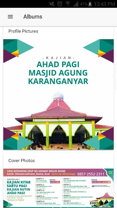 Aplikasi ini menyajikan fitur untuk mendengarkan kajian dan murottal dgn radio android, info kajian yang ada disolo raya dan video kajian yang ada di Masjid Agung Karanganyar dan sekitarnya.