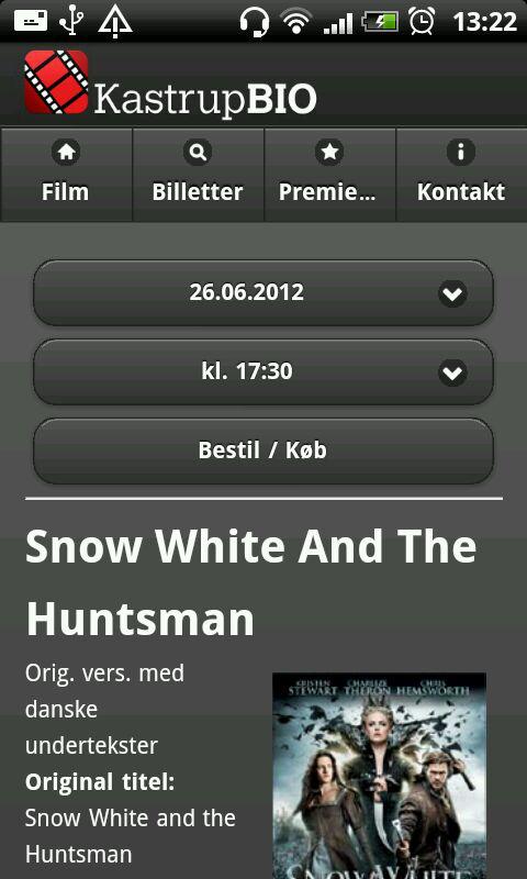 Med denne app har du mulighed for at gennemse programmet for Kastrup Bio, samt se yderligere filminformationer som trailer, censur, medvirkende skuespillere, varighed m.m.