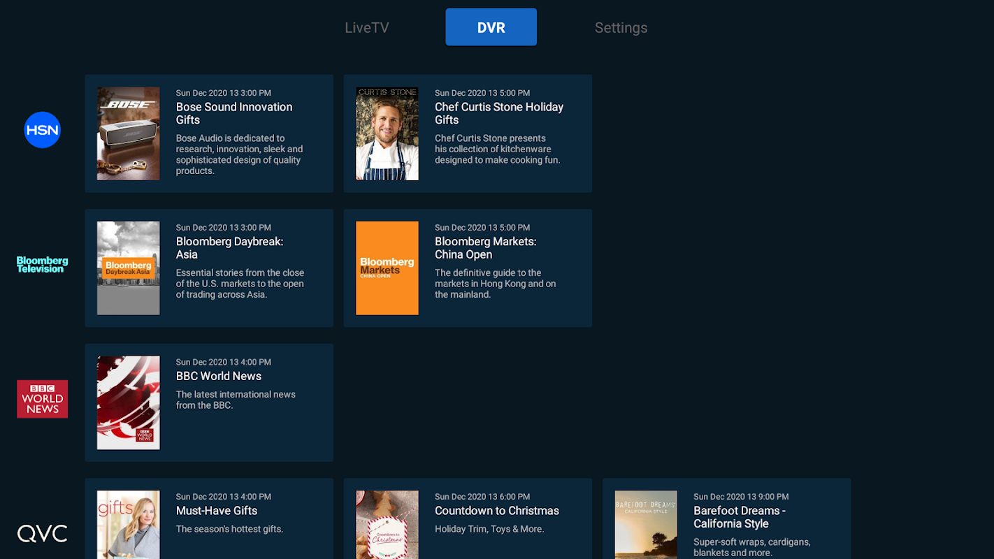 Kanäle wie HSN Home Shopping Network, The Jewelry Channel und QBC ermöglichen es Ihnen, ihre Produkte anzuzeigen und zu kaufen, was auf dem Bildschirm angezeigt wird. Alles, was Sie tun müssen, ist, mit Ihrem Finger über den Bildschirm Ihres Telefons zu streichen, um das gewünschte Produkt zu kaufen / weitere Informationen zu erhalten!