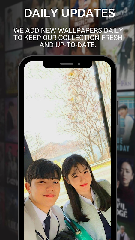 Erhöhen Sie die visuelle Attraktivität Ihres Geräts mit unserer K-Drama-Hintergrund-App – Ihrem Tor zu einer Welt voller fesselnder und herzerwärmender koreanischer Drama-Momente. Tauchen Sie direkt von Ihrem Startbildschirm aus in die bezaubernde Welt der K-Dramas ein.