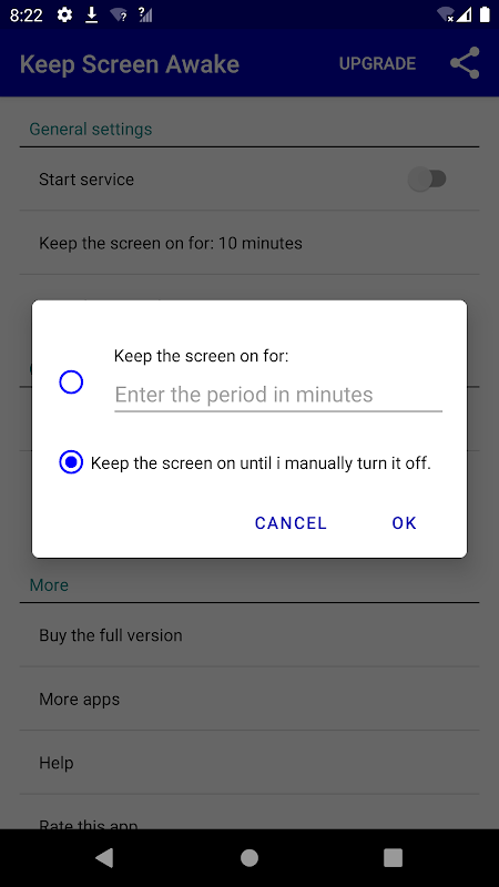 Über Keep screen turned on