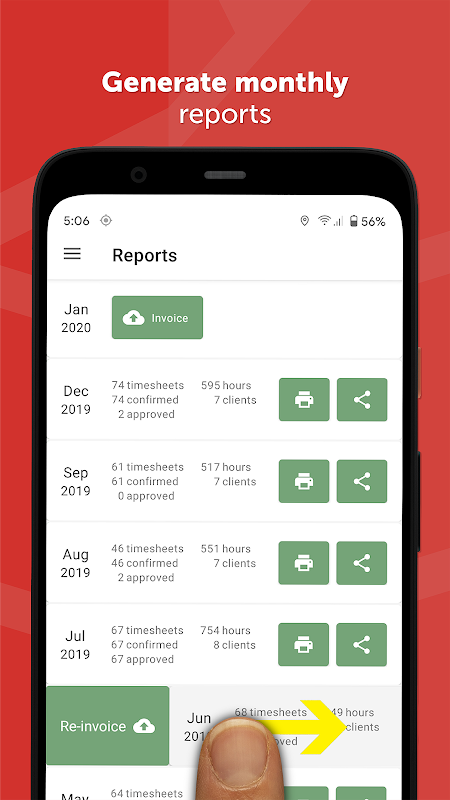 Aufschlussreiche Berichte gruppieren Arbeitszeittabellen nach Kunde, Mitarbeiter oder Tag. Sie können Arbeitszeittabelleninformationen herunterladen, um sie in Ihre bestehenden Abrechnungs- und Gehaltsabrechnungssysteme zu integrieren.