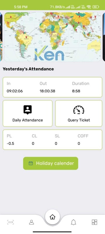 Ken HRMS ist die App, mit der Mitarbeiter ihren täglichen Anwesenheitsstatus sehen können.