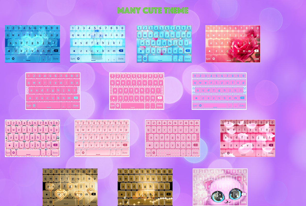 There are more than 10,000 colorful themes on the market that are compatible with Cute Keyboard and we are offering them for free every week! You can choose these topics to stand out among your friends.