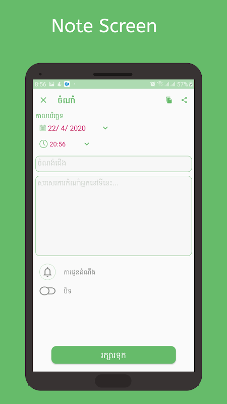 Khmer Calendar is an application that have many feature like creating note for your events, show public holiday and show Sile day. We will update it more for the next time.