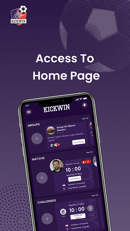 Kickwin ist eine soziale Plattform, die eine Lösung für die Benutzerplanung, die Organisation von Fußballspielen und die Buchung von Spielfeldern bietet