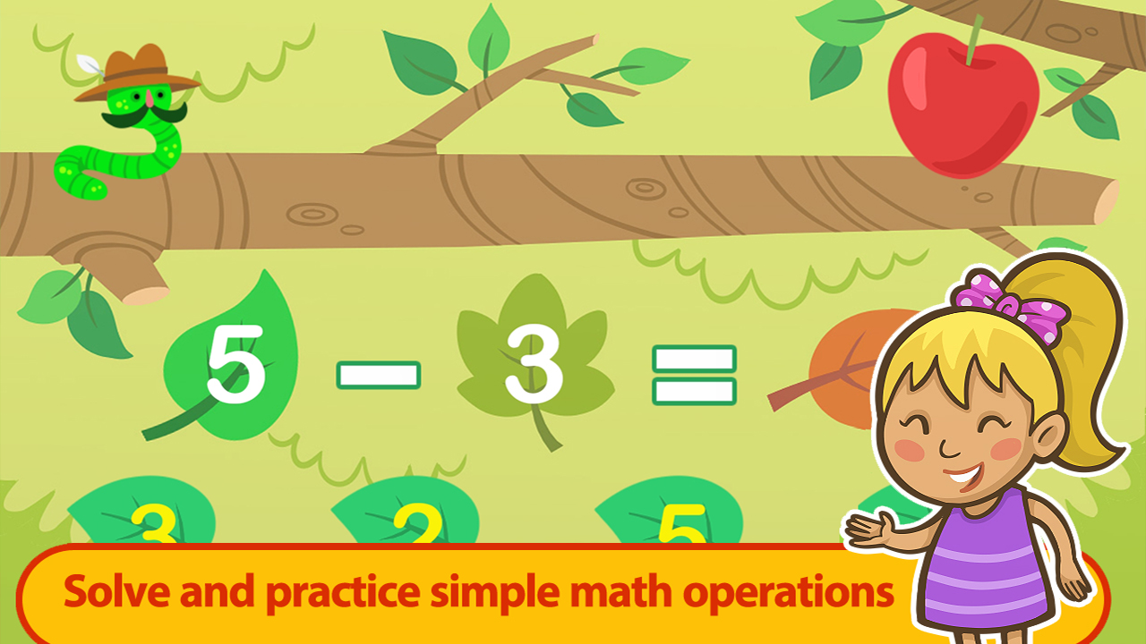 Mr. Worm's Kinder lernen mathematische Operationen wie Addition, Subtraktion, Multiplikation und Division.
