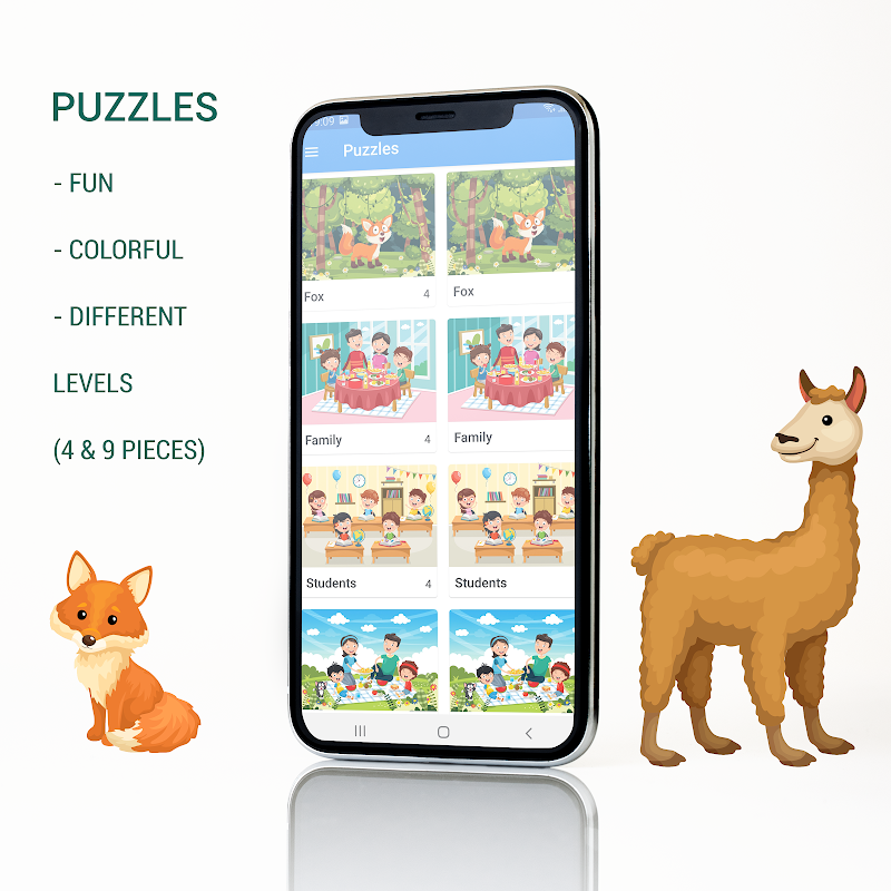 This app is 100% safe for children, all images, puzzles and games have been carefully selected.