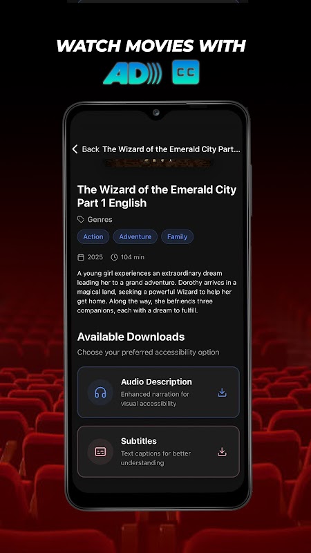 Audiodeskriptionen: Streamen oder laden Sie beschreibende Audiospuren herunter, die die visuellen Elemente begleiten.