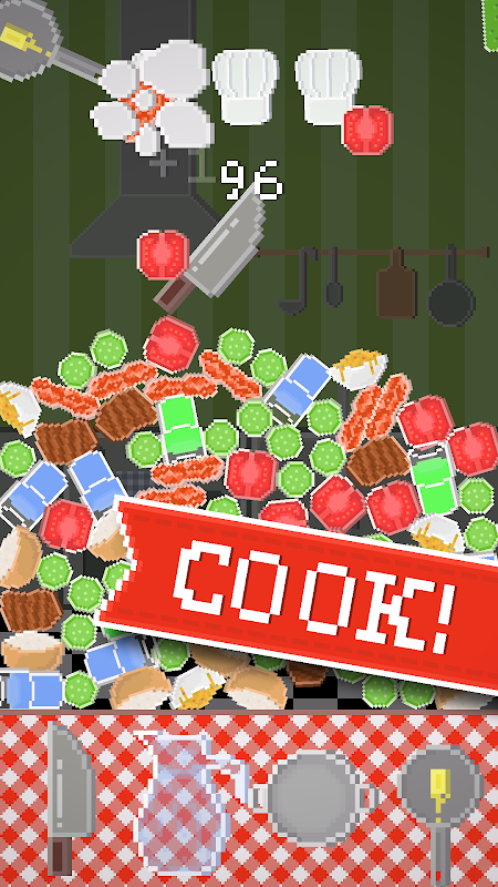 In Kitchen Complications, you have to prepare as much food as possible by throwing kitchen tools at falling unprepared food. When it is time to eat, you eat what the master chef tells you to eat. But you best eat more than your belly can contain and you best throw your tools with grace and elegance, because if you don't, the food will spoil and the chef will get more and more furious with you.