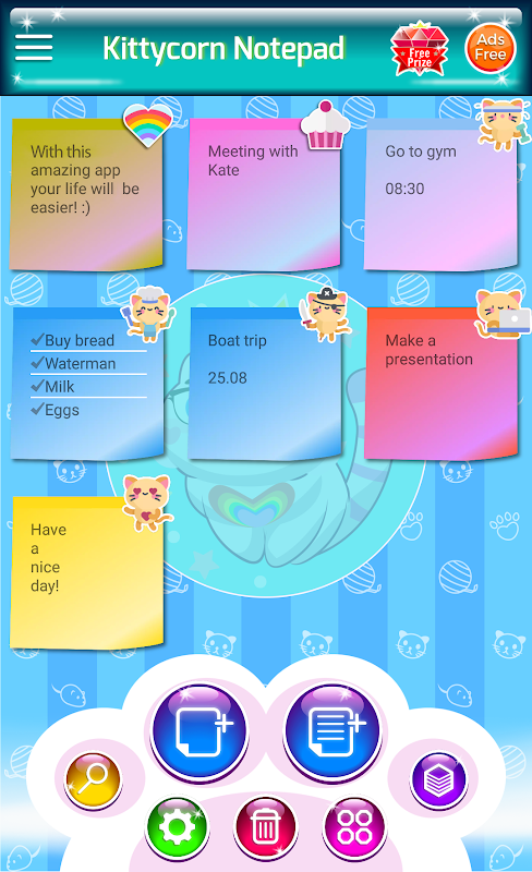 ★ Kittycorn Notepad ist eine schön gestaltete Anwendung, perfekt für Mädchen, die sich an viele Dinge erinnern möchten!