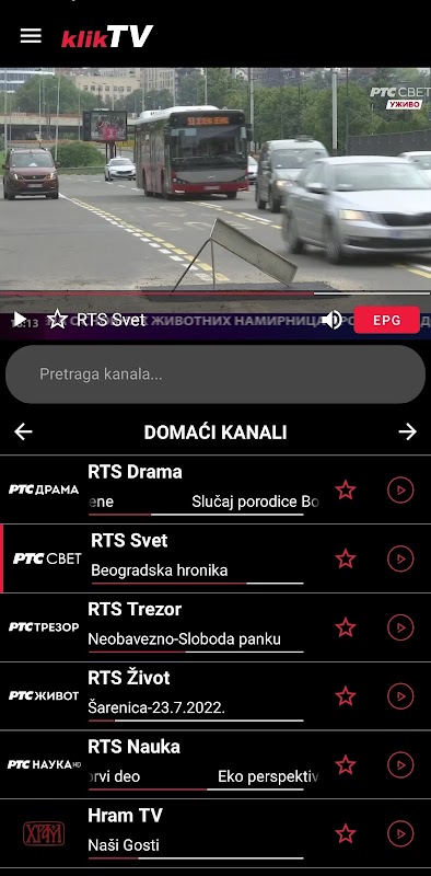 Sehen Sie sich Ihre Lieblingssendungen live über die Klik TV-Anwendung an. Sehen Sie sich Live-Pink-Kanäle, Zadruga-Kanäle sowie die neuesten Hollywood-Blockbuster an! Über 100 in- und ausländische Fernsehsender, die Sie über die KlikTV-Anwendung verfolgen können.