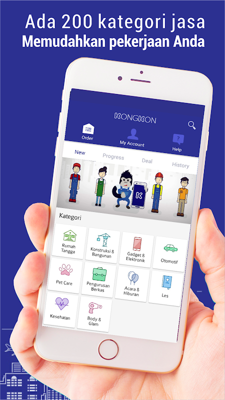dan dapat memilih beragam profesi di Kongkon dan pilihan yang yang mudah pada aplikasi. Kemudahan ini juga membuat keahlian mitra menjadi lebih mudah terlihat dan ditemukan oleh masyarakat. Hal ini menjadi lapangan pekerjaan yang lebih fungsional dan efisien.