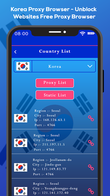 Korea Proxy Browser - Unblock Websites Free Proxy Browser app allows you to simply access to your favorite content which you need from your single device. Connect with Websites and easily connect the web privately & anonymously, Application with easy to download or find search history. Coming with Easy touch or allow the option to change the available connection from the device.