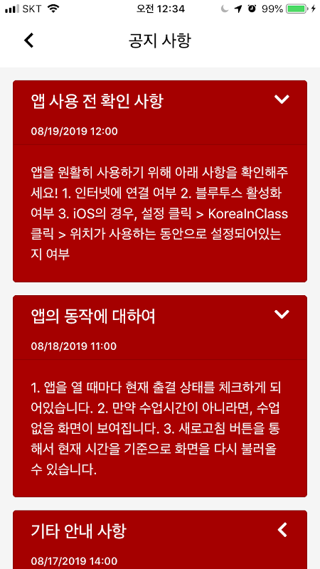 App, mit der Studenten der Korea University per Knopfdruck in der App teilnehmen können