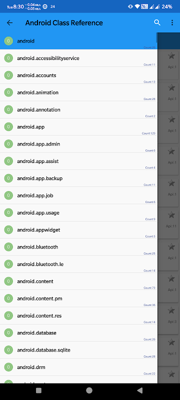 Die Anwendung enthält über 7000 (über 300 Pakete) Android-Klasseninformationen bis API Level 30 (Android 11.0).