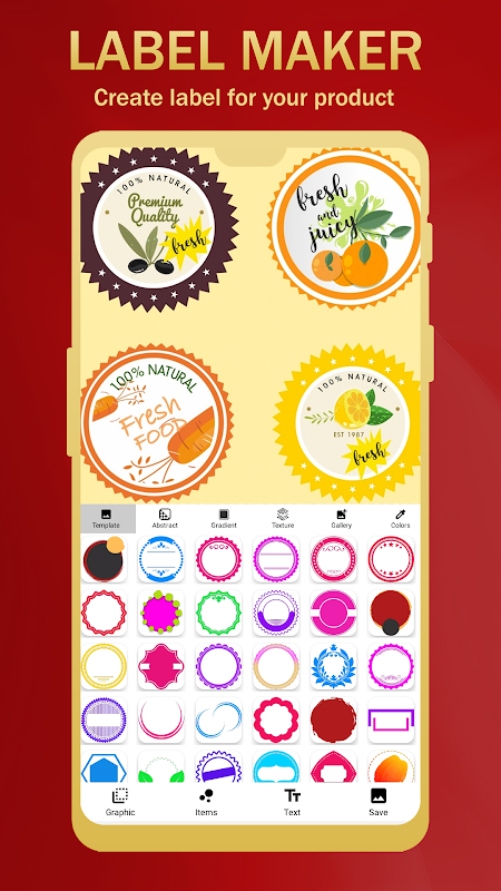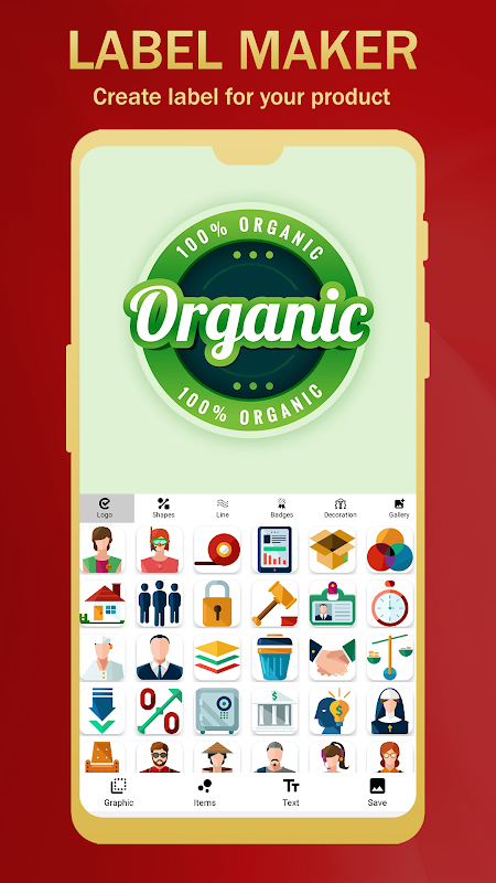 Lassen Sie Ihrer Kreativität freien Lauf und erstellen Sie mit ein paar Handgriffen auf Ihrem Gerät ein atemberaubendes Etikett. Sie können das Beste aus dieser Anwendung herausholen und fantastische Etiketten für Ihr Unternehmen erstellen, ohne sich in komplizierte Situationen zu begeben. Die riesige Sammlung an Aufklebern, Stempeletikettenvorlagen und unserem Logo-Maker hat die Arbeit super einfach gemacht.