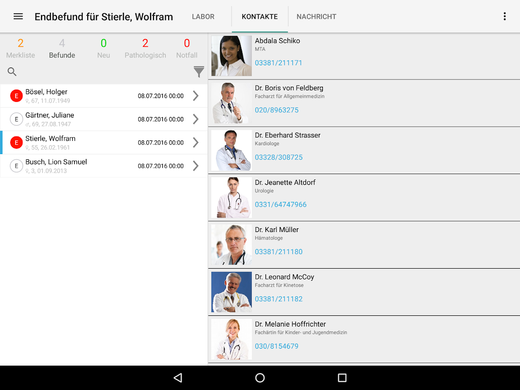 - Hochpathologische Filter für Befundliste