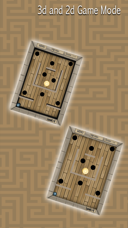 Classic labyrinth game where you control the ball while avoiding holes and traps to reach the destination.