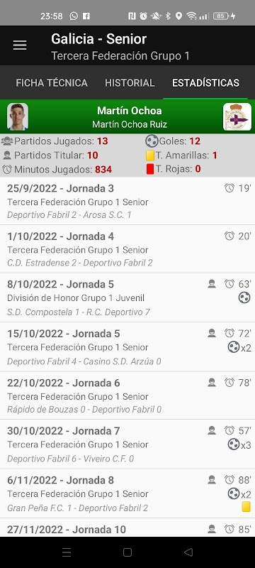 - Datenbank mit mehr als 100.000 Spielern. Technisches Blatt, Geschichte, Ligastatistik, Fotos. Fast unbegrenzte Informationen !!