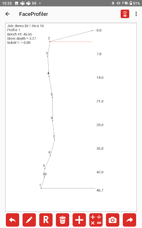 Die Face Profiler Field Software von LTI berechnet Bankhöhen, minimale und optimale Belastungen, Bohrlochwinkel und -versätze, Bohrlochtiefen und mehr – alles zur Optimierung Ihres Sprengdesigns.