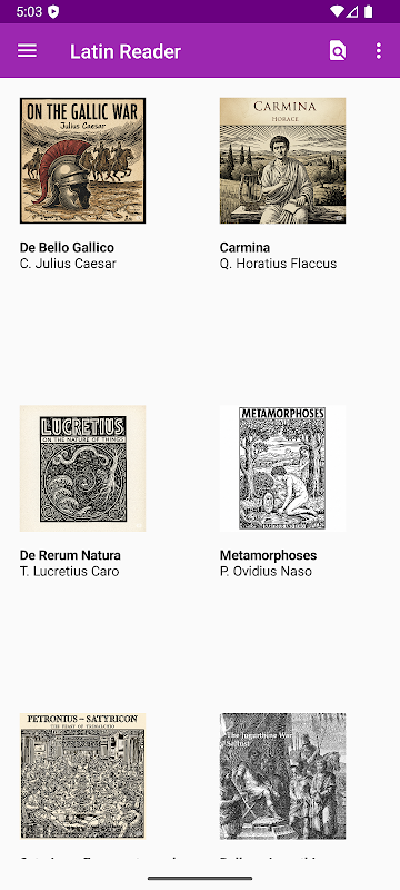 Der lateinische Reader enthält eine Auswahl von bekannten klassischen Texten sowohl Latein und Englisch. Sie können Cäsars Gallischen Krieg, Vergils Aeneis, Ovids Metamorphosen, Petronius, Lukrez und andere auf Ihrem Handy oder Tablet zu lesen. Der lateinische Reader App beinhaltet ein vollständiges Latein Englisch-Wörterbuch mit über 17.000 Einträgen.