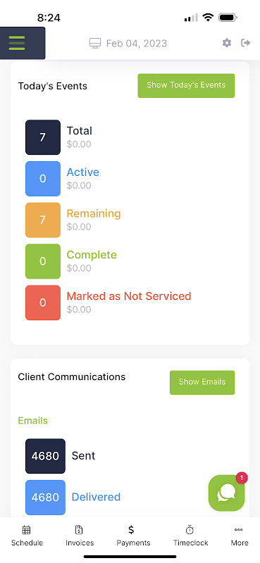 - Planung und Rechnungsstellung – Arbeiten Sie Ihren Zeitplan ab, buchen Sie einmalige und Wartelistenjobs, stellen Sie Rechnungen und erhalten Sie Zahlungen
