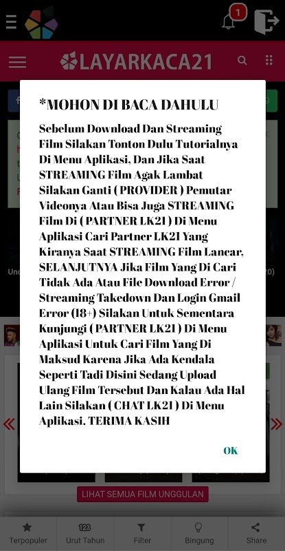 Perlu Diketahui, Film-Film Yang Terdapat Pada Aplikasi Ini Didapatkan Dari Web Pencarian Di Internet. Kami Tidak Menyimpan File Film Tersebut Di Server Sendiri Dan Kami Hanya Menempelkan Link-Link Tersebut Di Aplikasi Kami.