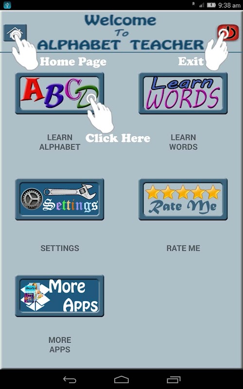 1. Learn Alphabates - Shows all alphabets as well as pronunciation of the character.