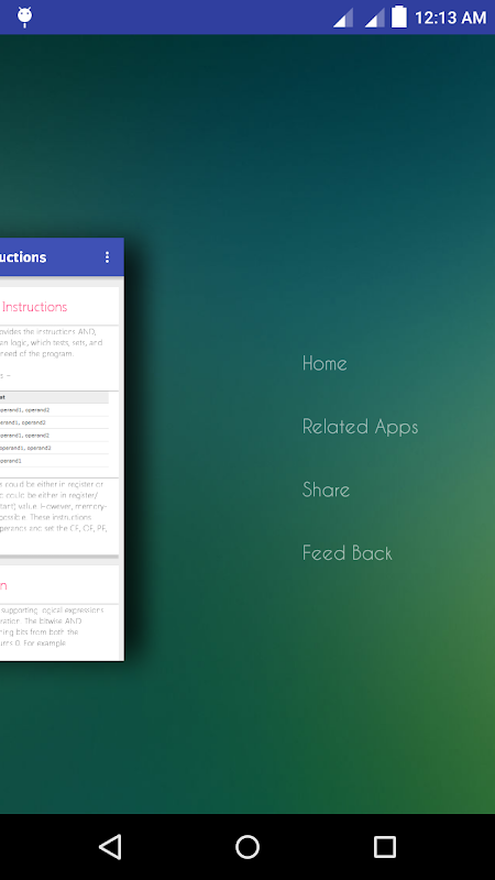 This application is also made in a manner to help out all the students who wish to study Assembly Language on a go with a pocket sized Assembly Language book in your smart phone.