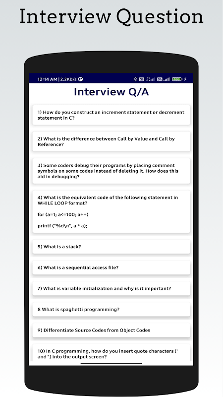This is the only app in which you can learn the whole syllabus of C language with Tutorials ,programs and Interview questions and answers.