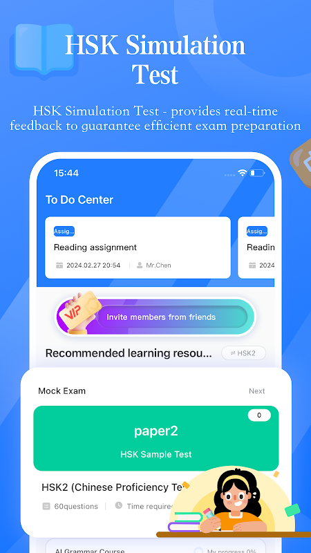 Learn Chinese verfügt über ein hochrangiges Lehr- und Forschungsteam, das Kurse entwickelt hat, die alle Stufen von HSK1, HSK2, HSK3, HSK4, HSK5 und HSK6 abdecken. Es verfügt über mehr als 500 KI-Kurse und 100 vollständige HSK-Simulationstestpapiere für alle Niveaus, die Übungen zu Zeichen, Wörtern, Kapiteln und 20 gängigen Lehrbüchern sowie eine Liste mit 5.000 Testzielvokabeln umfassen. Chinesisch lernen bietet alle wesentlichen Lerninhalte von HSK.