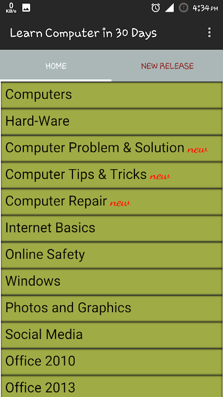If you are new to the computer, don't worry,with this "Learn Computer in 30 days" app.