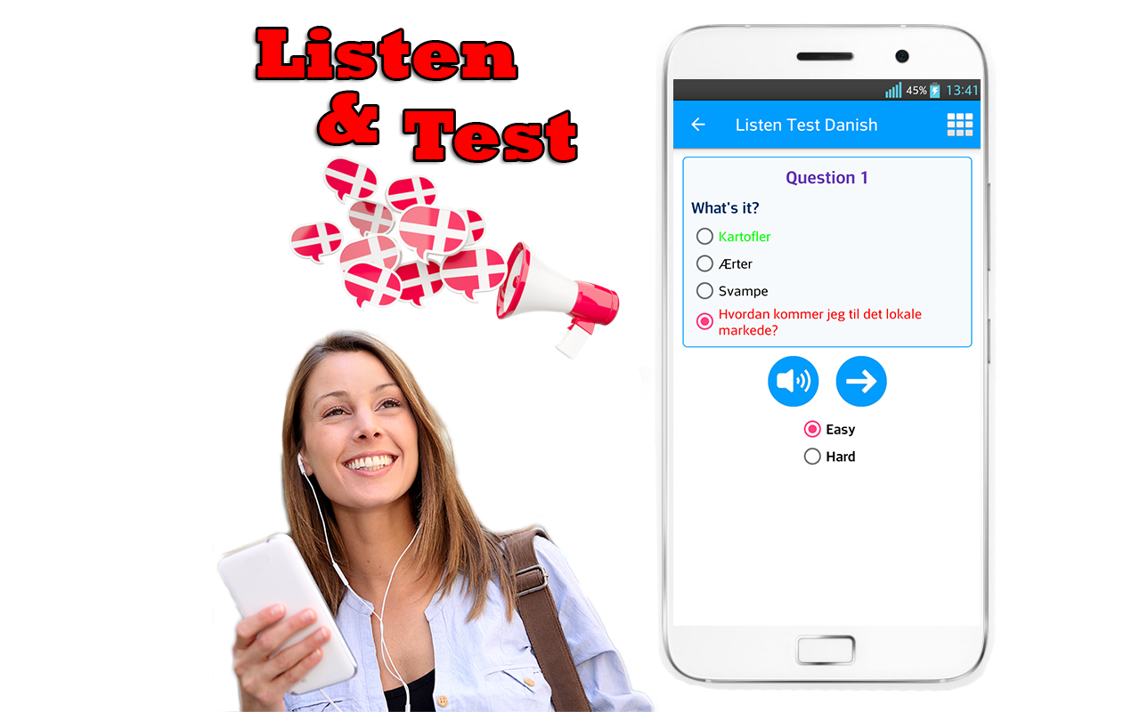 Learn Danish hat 1305 gemeinsame Phrasen auf Dänisch mit Ton und ohne Netzwerk