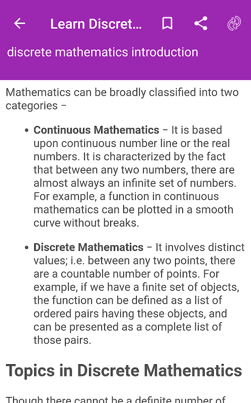 You can easily Learn Discrete Mathematics by using this app. Basic Discrete Mathematics is very easy to learn if you interested in Discrete Mathematics. This app has basic Discrete Mathematics notes & tutorial.