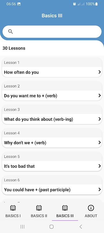 - Englisch sprechenden Grund 90 Lektionen mit über 900 Audio-Dateien in dieser Anwendung enthält Wenn Sie mit den Grundlagen der englischsprachigen vertraut sind.