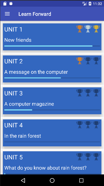 Diese Anwendung ist für Studenten, die englische Sprache Unterrichtsmaterialien für „Forward Grade 4“ sind und eignet sich für alle Kinder und Erwachsene, die die Sprache in der Primarstufe lernen. Die App enthält zehn verschiedene Arten von Training, spielerisch die Rechtschreibung, Aussprache und Bedeutung von Worten einzuführen. Entwickelt, um den kognitiven Ansatz zu lernen Vokabular gerecht zu werden, trägt diese Anwendung effizienter und schneller Auswendiglernen von Wörtern und Formen der Anerkennung ihrer Fähigkeiten und der Gebrauch der Sprache.