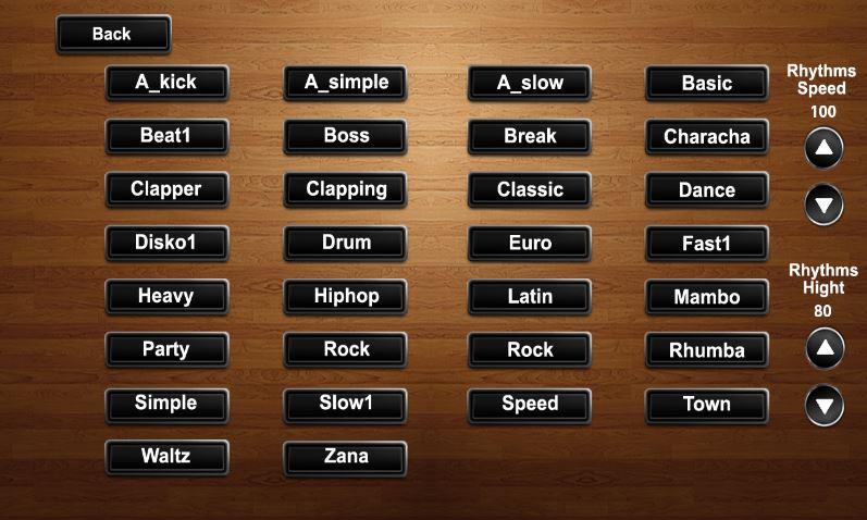 Regarding rhythms, we have put 30 western rhythms and 120 of the most beautiful oriental and Gulf rhythms. You can play them at a natural speed and slow in order to help the beginners to learn to play with the rhythm, and the rhythm speed can be manipulated through the tempo buttons on the top left of the screen, among these rhythms (Ayoub, Maqsum, Saidi, Gulf, Shaabi, Dabke, Samaritan, Joby, Rumba, Ktkvati, Bandary, Emirates, Dossary ... etc)