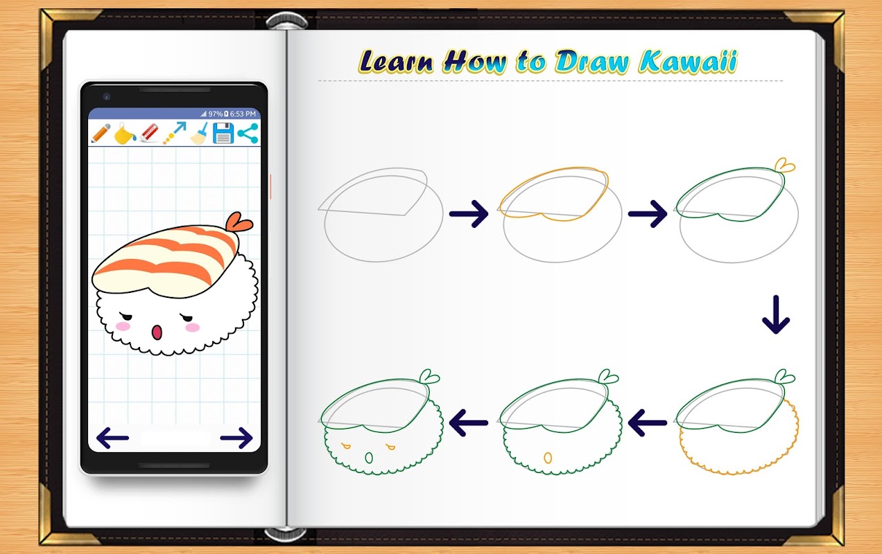 If you want to draw beautiful kawaii anime but you did not know how to draw, no worries. This drawing tutorial for kids application will provides some of adorable kawaii drawing step by step and don't need any special skills, it’s self-teaching.