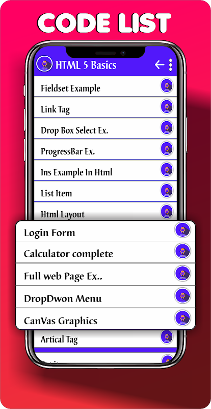 Die App „Learn Html5 Code 2021“ verfügt über eine wirklich einfache und intuitive Benutzeroberfläche. Es ist die beste App, mit der Sie die HTML-Programmiersprache zum kostenlosen Lernen lernen können. Also, worauf wartest Du? Laden Sie die App jetzt herunter, um HTML Programming Pro Developer zu werden.